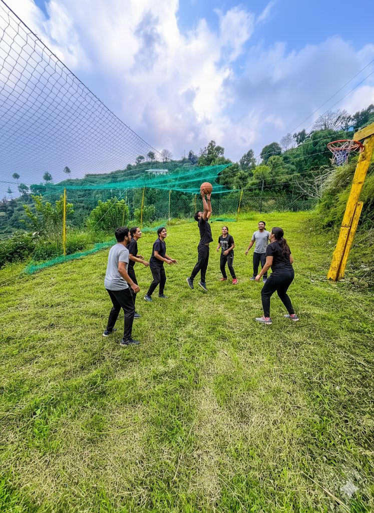 Step into the fresh mountain air and have some fun outdoors! Challenge your friends to a quick cricket game, shoot some hoops at the basketball court, or let the little ones enjoy their own kids’ basketball setup. Practice your skills with the tennis trainer or TT trainer, or simply play a light-hearted match of table tennis with family. Every game here comes with a view of orchards and open skies.